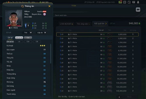 Trẻ, đầy sự gan góc và thái độ thi đấu lạnh lùng đến mức xuất chúng, chàng hậu vệ đa tài David Alaba là một phần không thể thiếu trong đội hình Bayern Munich FIFA Online 3 của bạn. Trong phiên bản đã được update của FIFA Online 3, chỉ số của David Alaba đã được nâng lên 80, đặc biệt khi sử dụng David Alaba SS15 bạn sẽ thấy được anh chàng này có cách chơi bóng khôn ngoan như thế nào.