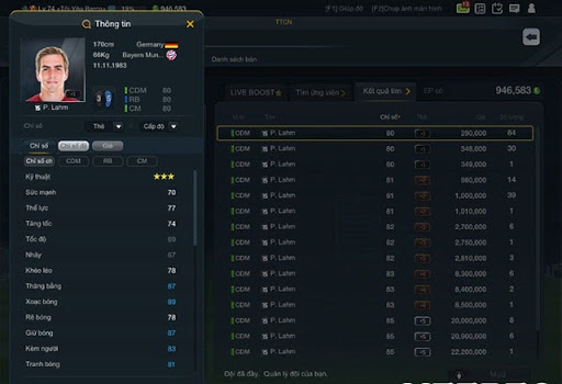Trong FIFA Online 3, Lahm là mẫu cầu thủ thông minh, thể hiện khả năng tranh cướp bóng vượt trội. Để đội bóng Bayern Munich trong FIFA Online 3 thi đấu đẳng cấp nhất thì Lahm SS15 là lựa chọn sáng suốt nhất.