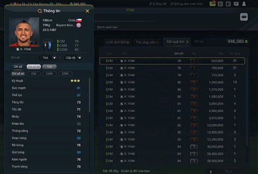 Vidal là cầu thủ được rất nhiều người chơi tận dụng khi xây dựng đội hình của Bayern Munich trong FIFA Online 3. Vidal sở hữu thể lực 87, sức cày 90p, thậm chí là có thể sử dụng anh chàng này đến 120p. Thể lực dồi dào, hợp cả tấn công và phòng ngự, Vidal chình là CDM hoàn hảo cho sơ đồ chiến thuật của Bayern Munich mà bạn đang xây dựng.