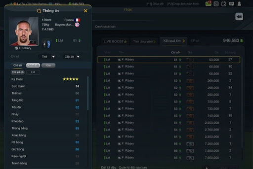 LM của Bayern Munich đội hình FIFA Online 3: Ribery