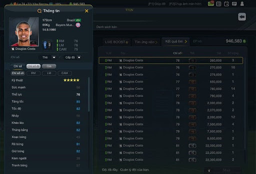 Trong thị trường chuyển nhượng của FIFA Online 3, tiền đạo Douglas Costa được xem là một cái tên sáng giá và có chỉ số cao xuất sắc. Sở dĩ có được thành tích này bởi khả năng ghi bàn của Douglas Costa được đánh giá là thiên tài. Chính vì vậy, trong những trận đấu quyết định của Bayern Munich hay trong bất kỳ chiến thuật FIFA Online 3 nào, cái tên Douglas Costa vẫn không thể thiếu được và là niềm mơ ước sở hữu của nhiều game thủ hiện nay.