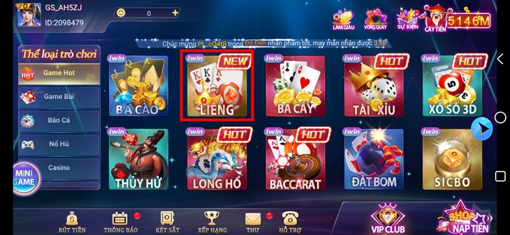 Trước khi chơi bạn phải Nạp tiền vào tài khoản hoặc làm nhiệm vụ tại IWIn để nhận tiền. Tại màn hình giao diện game, bạn lựa chọn game Liêng để tiến hành chơi game